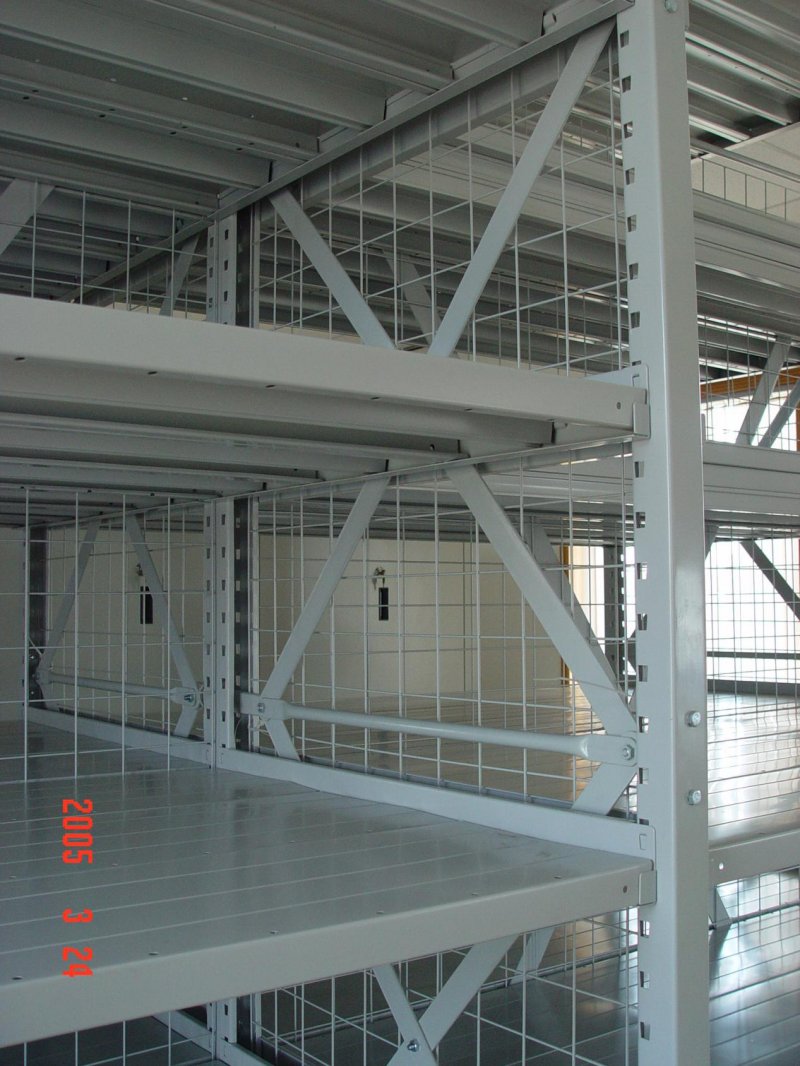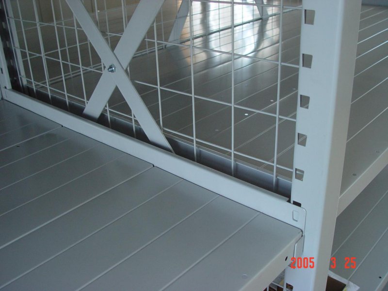 Easy Assemble Metal Shelving 隔板式貨架是中型貨架系列中常用的一種,由立柱、橫梁、寬掛、窄掛、防脫鎖聯(lián)接而成。更上層與更下層層板為固定式,中間任一塊層板可調節(jié),節(jié)距為50mm,可以使客戶根據(jù)貨物的體積大小來調節(jié)間距。相比其他類型貨架,沒有橫梁使得高度空間更大,也更容易安裝。 易裝貨架的零部件采取冷沖模機械沖孔定位,保證其一致性。貨架不需要螺栓,只需要插接,除頂部和底部外,均可以以50mm為單位隨意調節(jié)高度。