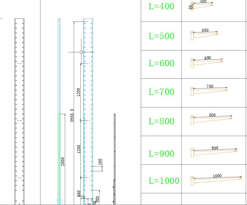 中型懸臂貨架適用于存放長(zhǎng)物料、環(huán)型物料、板材、管材及不規(guī)則貨物。懸臂可以是單面或雙面,懸臂式貨架具有結(jié)構(gòu)穩(wěn)定,載重能力好、空間利用率高等特點(diǎn)。 懸臂式貨架多用于機(jī)械制造行業(yè)和建材超市等。加了擱板后,特別適合空間小,高度低的庫(kù)房,管理方便,視野寬闊,利用率比普通貨架更高。懸臂式貨架是在傳統(tǒng)式貨架支柱上裝設(shè)外懸臂而成,是一種長(zhǎng)形物專用的貨架。 中型懸臂貨架,主要是指高度在3000mm以內(nèi),單層載重1000kg以內(nèi)的。這樣的高度參數(shù),和承載要求。貨架的立柱通常使用300*90mm,懸臂采用120*90的材料制作而成的。 存取貨物采用人工存放為主,多數(shù)不采用叉車配套使用。通道寬度設(shè)計(jì)為1400mm以內(nèi)為更好。