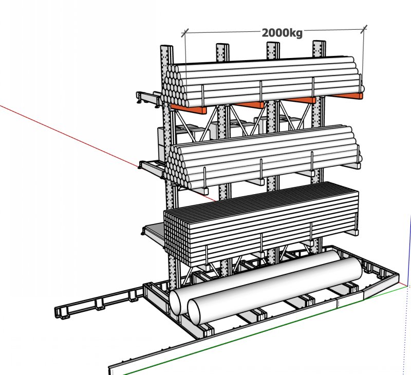 單層載重2000kg,我們?cè)O(shè)計(jì)為4個(gè)懸臂。每根懸臂載重500kg