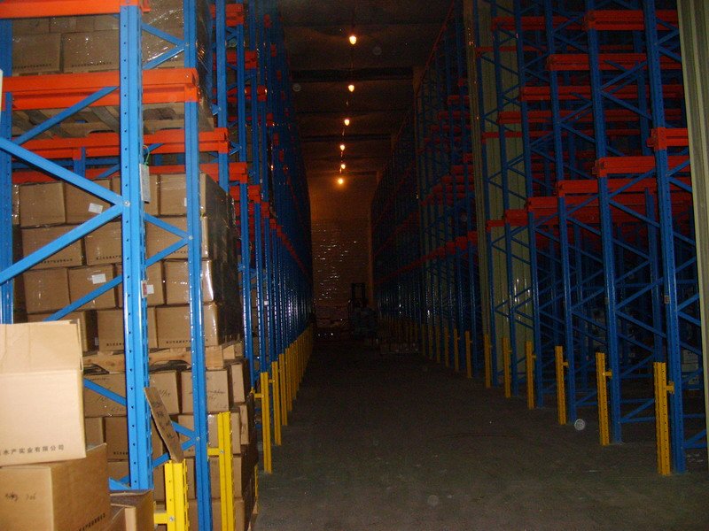 貫通式貨架又稱通廊式貨架或叉車駛?cè)胧截浖�。貫通式貨架可供叉車(或帶貨叉的無人搬運車)駛?cè)胪ǖ来嫒∝浳�,適用于品種少,批量大類型的貨物儲存。貫通式貨架除了靠近通道的貨位,由于叉車需要進(jìn)入貨架內(nèi)部存取貨物,通常單面取貨建議不超過7個貨位深度。為提高叉車運行速度,可根據(jù)實際需要選擇配置導(dǎo)向軌道,與貨位式貨架相比,貫通式貨架(駛?cè)胧截浖埽┑膸炜臻g利用率可提高30%以上,貫通式貨架(駛?cè)胧截浖埽⿵V泛應(yīng)用于批發(fā)、冷庫及食品、煙草行業(yè)。