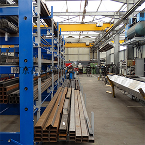 懸臂式貨架適用于存放長(zhǎng)物料、環(huán)型物料、板材、管材及不規(guī)則貨物。懸臂式貨架立柱多采用H型鋼或冷軋型鋼,懸臂采用方管、冷軋型鋼或H型鋼,懸臂與立柱間采用插接式或螺栓連接式,底座與立柱間采用螺栓連接式,底座采用冷軋型鋼或H型鋼。貨物存取由叉車、行車或人工進(jìn)行。
