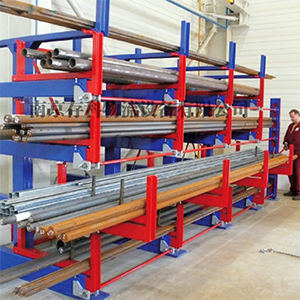 懸臂式貨架適用于存放長物料、環(huán)型物料、板材、管材及不規(guī)則貨物。懸臂式貨架立柱多采用H型鋼或冷軋型鋼,懸臂采用方管、冷軋型鋼或H型鋼,懸臂與立柱間采用插接式或螺栓連接式,底座與立柱間采用螺栓連接式,底座采用冷軋型鋼或H型鋼。貨物存取由叉車、行車或人工進行。
